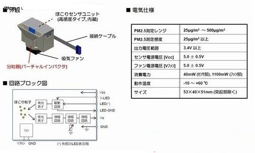 鑒于當前東亞地區(qū)嚴重的空氣污染形勢,夏普宣布,將于2014年2月開始發(fā)售PM2.5檢測模塊DN7C3JA001,售價為10500日元。這款檢測模塊具有檢測PM2.5以及更大的顆粒物的功能,并且具有世界上最短的檢測時間。