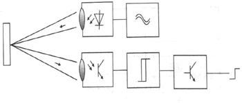 發(fā)送器對(duì)準(zhǔn)目標(biāo)發(fā)射光束,發(fā)射的光束一般來(lái)源于半導(dǎo)體光源,發(fā)光二極管(LED)、激光二極管及紅外發(fā)射二極管。光束不間斷地發(fā)射,或者改變脈沖寬度。接收器有光電二極管、光電三極管、光電池組成。在接收器的前面,裝有光學(xué)元件如透鏡和光圈等。在其后面是檢測(cè)電路,它能濾出有效信號(hào)和應(yīng)用該信號(hào)。