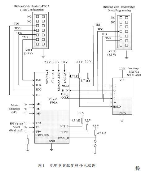 Xilinx公司Virtex5系列的FPGA具有多重配置的特性,允許用戶在不掉電重啟的情況下,根據(jù)不同時(shí)刻的需求,可以從FLASH中貯存的多個(gè)比特文件選擇加載其中的一個(gè),實(shí)現(xiàn)系統(tǒng)功能的變換。