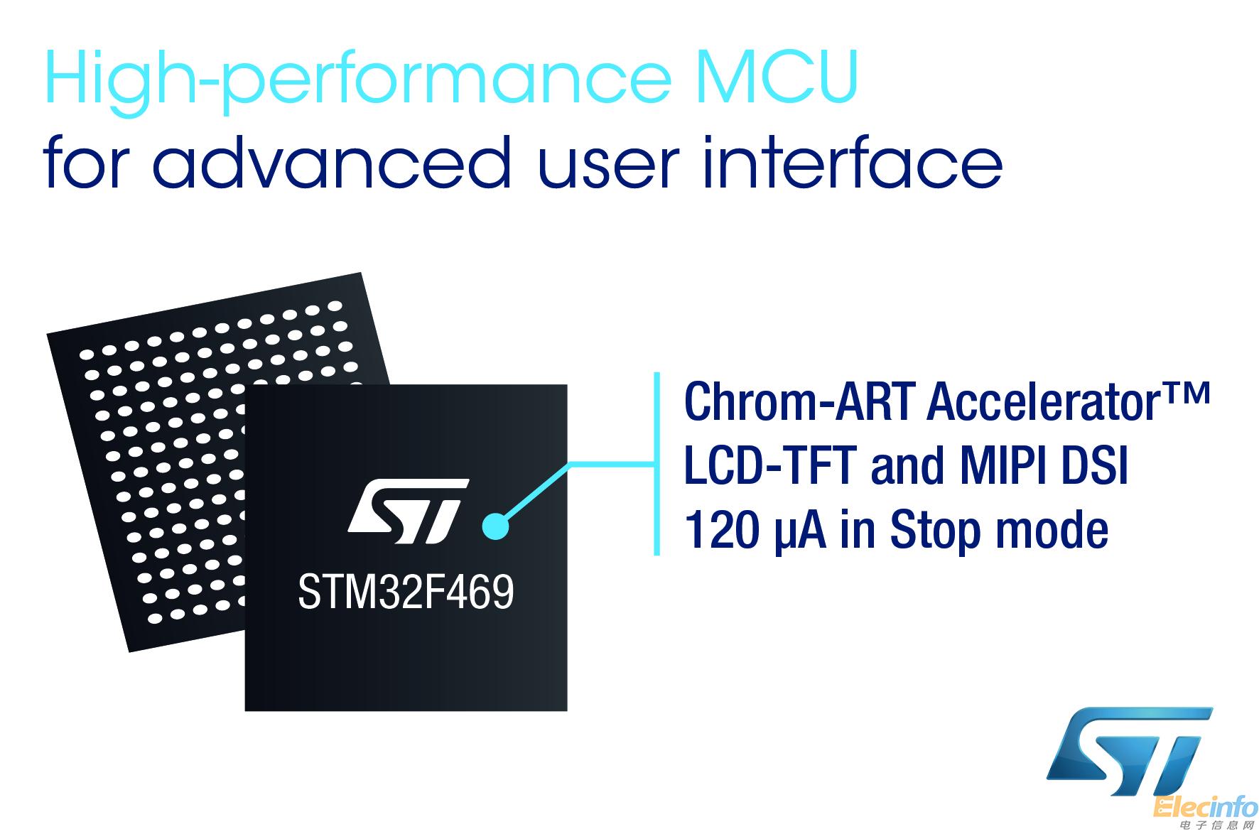 中國,2015年4月27日——橫跨多重電子應(yīng)用領(lǐng)域、全球領(lǐng)先的半導(dǎo)體供應(yīng)商意法半導(dǎo)體(STMicroelectronics,簡稱ST;紐約證券交易所代碼:STM)推出新款微控制器芯片,讓穿戴式裝置、智能家電產(chǎn)品等物聯(lián)網(wǎng)(IOT,Internet of Things)應(yīng)用具有出色的圖形處理性能,實(shí)現(xiàn)像智能手機(jī)一樣的直觀的圖形用戶界面。通過整合Chrom-ART Accelerator?[1]技術(shù)及已被廣泛用于先進(jìn)智能手機(jī)和平板電腦的MIPI-DSI[2]技術(shù),STM32F469/479新系列微控制器的性能達(dá)到更高水平,且不會增加成本及影響電池的續(xù)航能力。