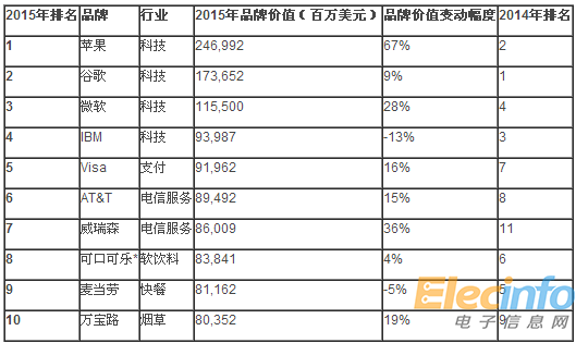 根據(jù)美通社的報道,在27日發(fā)布的2015年BrandZTM最具價值全球品牌100強榜單上,蘋果超越谷歌,榮登“全球最具價值品牌”之位。蘋果的品牌價值已增至2470億美元,同比增長67%。退居第二的谷歌也實現(xiàn)了9%的增長,品牌價值達到1737億美元。微軟的品牌價值目前達到1155億美元,成為新科季軍,排名因價值增長28%而上升一位。