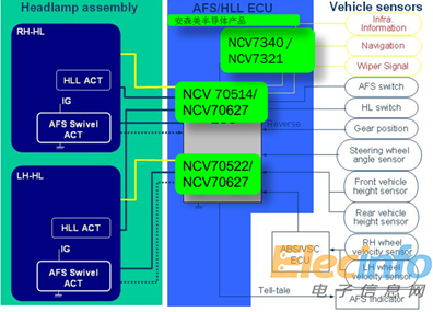 安森美半導(dǎo)體提供多種方案用于AFS,主要產(chǎn)品如低功耗高速CAN收發(fā)器NCV7340和獨立式低功耗混合信號LIN收發(fā)器NCV7321、微步進電機驅(qū)動器NCV70514、NCV70627和NCV70522。