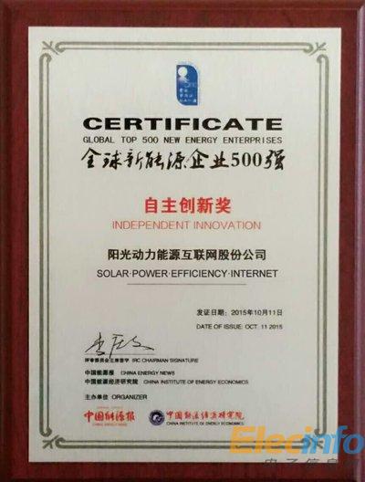 綠能寶入選全球新能源企業(yè)500強(qiáng)獲自主創(chuàng)新獎