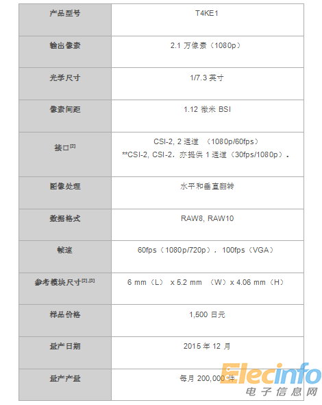 T4KE1是一款210萬像素1.12微米BSI CMOS圖像傳感器,采用1/7.3英寸光學(xué)格式并支持1080p/60fps圖像輸出。該新傳感器捕捉的識別圖像具有比傳統(tǒng)CMOS圖像傳感器更高的敏感度,因為其放棄像素結(jié)構(gòu)中常用的濾色器,提高了近紅外光譜的靈敏度。其采用移動設(shè)備中廣泛使用的串行接口[1],可實現(xiàn)輕松集成。