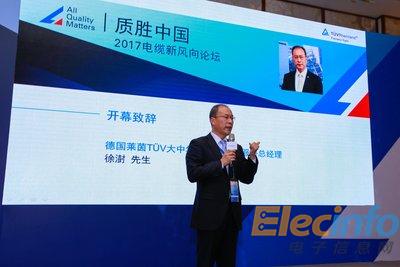 德國(guó)萊茵TUV大中華區(qū)工業(yè)及商用產(chǎn)品服務(wù)總經(jīng)理徐澍先生致開(kāi)幕辭