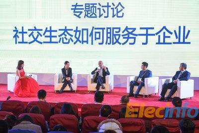 騰訊企點副總裁譚毅在會上與嘉賓探討“社交生態(tài)如何服務(wù)于企業(yè)”