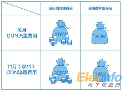 對于電商而言,雙十一是每年最難啃的骨頭,因?yàn)殡p十一所在11月流量比10月增速會(huì)在1.6倍左右,這意味著11月的流量開銷大致會(huì)在32萬元左右。但在今年,因?yàn)閳D片瘦身,11月的CDN流量費(fèi)用僅為18萬元,節(jié)省成本近一倍,由此可見“圖片瘦身”的威力。