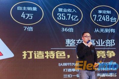 “2016年我們的成長,剛才開場視頻的時候已經(jīng)有了一些展示。整車實(shí)現(xiàn)了自主4萬輛的銷售,營收實(shí)現(xiàn)35.7億,特別是“享定制”品牌實(shí)現(xiàn)了7248臺銷售。所以2016年整車電商團(tuán)隊(duì)在這個領(lǐng)域的創(chuàng)新又領(lǐng)先了一步,也為在這個模式最終的落地打下了堅(jiān)實(shí)的基礎(chǔ)。