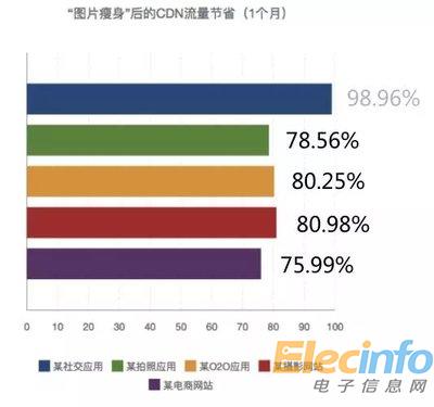 在實(shí)際使用中圖片越大,壓縮比越小,節(jié)省流量越多,下圖是五位用戶 CDN 流量的實(shí)際節(jié)省比例。