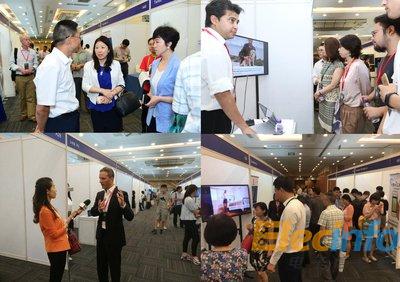 昌平區(qū)副區(qū)長蘇貴光巡展/海淀區(qū)副區(qū)長、中關(guān)村海淀園管委會主任李長萍聽硅谷參展商講解/硅谷展商接受央視采訪/展區(qū)盛況