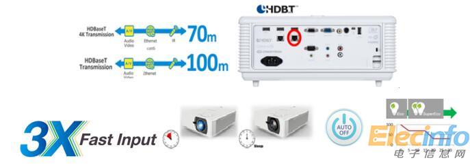 兩款投影機(jī)具備 HDMI,VGA out和HDBaseT遠(yuǎn)距離網(wǎng)絡(luò)傳輸接口,方便用戶接駁多路信號(hào)和顯示設(shè)備,在減少電纜數(shù)量的同時(shí),減少使用信號(hào)擴(kuò)展器等附加設(shè)備。此外,LS800HD與LS800WU擁有3X Fast Input響應(yīng)功能,低延遲輸入可降低信號(hào)傳輸之間的時(shí)間差,方便用戶及時(shí)做出反應(yīng)。智能省電自動(dòng)開關(guān)機(jī)搭配多重遙控碼遙控器,避免其它遙控器的干擾,節(jié)約能源并延長(zhǎng)投影機(jī)使用壽命。得益于工業(yè)設(shè)計(jì),支持7X24小時(shí)全天候運(yùn)行,使產(chǎn)品在多樣化使用環(huán)境中穩(wěn)定運(yùn)行。