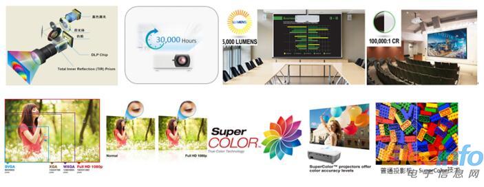 LS800HD與LS800WU分別擁有1920 x 1080和WUXGA 1920x1200高分辨率,5000和5500流明的亮度和100000:1對(duì)比度,在環(huán)境光比較亮的使用場(chǎng)景下,為用戶提供清晰的投影效果,并看到更多細(xì)節(jié)。LS800HD支持多種高畫質(zhì)分辨率,包含1080p與720p。LS800WU配備的WUXGA 1920x1200高分辨率,比1920x1080分辨率能呈現(xiàn)更多的內(nèi)容。兩款機(jī)器都采用SupercolorTM功能,色輪及光源調(diào)校功能提供比傳統(tǒng)DLP投影機(jī)更寬廣的色彩范圍,為用戶展現(xiàn)出細(xì)膩的視覺影像及色彩畫面。作為激光工程系列的兩款新機(jī)型, LS800HD與LS800WU采用雙色輪配置,兩片色輪同步轉(zhuǎn)動(dòng)達(dá)到色彩與亮度的最大化,從而帶來色彩還原與亮度的結(jié)合,使得圖像色彩更加明亮。