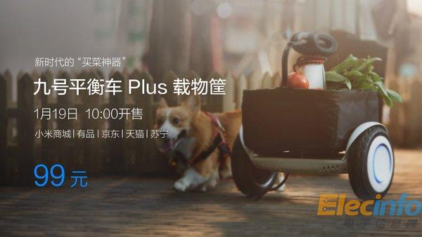 進入智能化時代,生活當然需要更多科技范兒。從今天起,一款新時代的“買菜神器” -- 九號平衡車Plus 載物框于1月19日上午10點準時開售,售價99元,發(fā)售渠道包括小米商城、有品、京東、天貓、蘇寧。