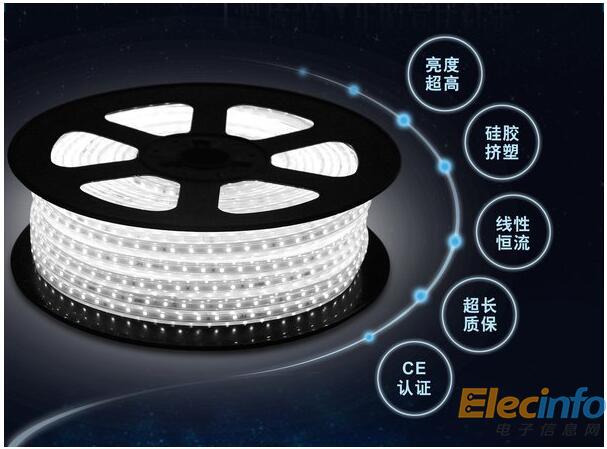 燈帶因把LED燈用特殊的加工工藝焊接在銅線或者帶狀柔性線路板上面,再連接上電源發(fā)光,發(fā)光時形狀如一條光帶而得名。又因其色彩豐富,可塑性強被廣泛運用于裝飾照明、辦公照明、貨架展柜照明及戶外亮化等領(lǐng)域。而高壓燈帶因其電源小型化,級聯(lián)長,塑膠原料擠出成型材質(zhì)作為安全保護膜,安裝簡單,即插即用,逐漸受到各行各業(yè)需求客戶的青睞。