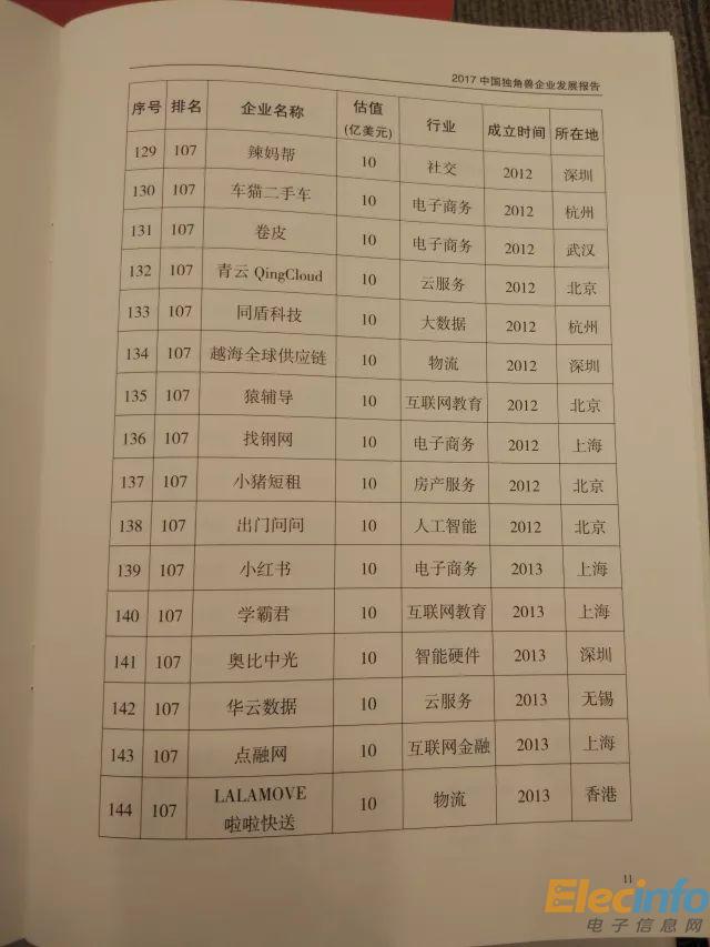 2017年獨(dú)角獸企業(yè)具體榜單: