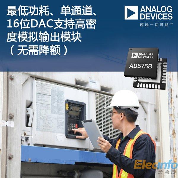 ADI公司的低功耗、單通道16位DAC支持高密度模擬輸出模塊,無須降額使用
