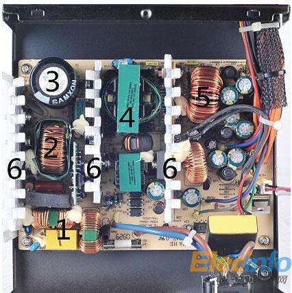 某電源的內(nèi)部結(jié)構(gòu)圖,序號(hào)1~6分別標(biāo)識(shí)出了大家應(yīng)該著重觀察的部分。