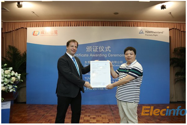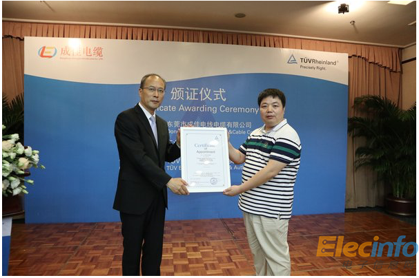 TUV萊茵首張機器人電纜認證證書花落成佳電纜