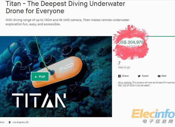 水下無人機(jī)泰坦眾籌總額已破30萬美金