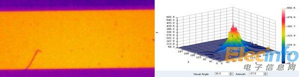 不同材料散熱能力的對比,材料的涂抹厚度是否滿足散熱要求,是否均勻,都可用 Fotric288熱像儀來觀測,它支持全輻射熱像視頻流 (Full radiometric thermal video),對所采集的溫度數(shù)據(jù),配合 AnalyzIR 軟件做分析時的3D溫差模式 (ΔT),可直觀觀測設(shè)計溫度或理論值之外的異常熱分布。