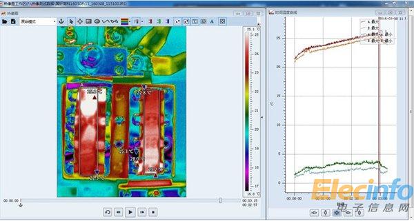 鋰電池充放電實驗,用來測試性能穩(wěn)定性,以防使用中出現(xiàn)嚴重發(fā)熱等情況。利用 FOTRIC 288熱像儀全輻射熱像視頻流功能,可以捕捉實驗中整個電池任意點的溫度,且后期可做任意分析。