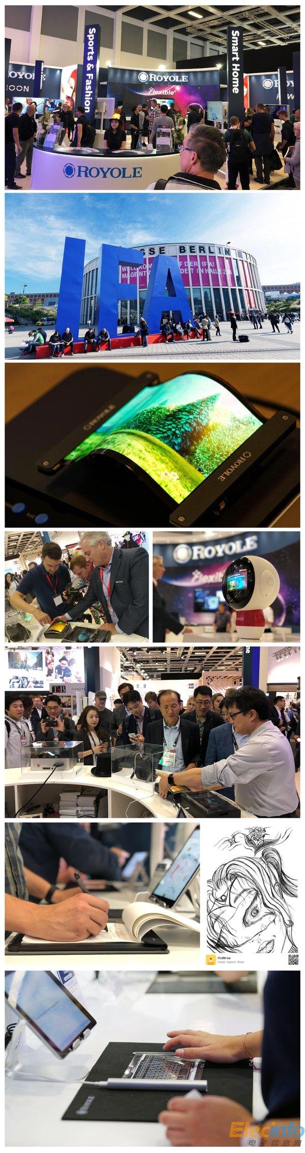 當?shù)貢r間8月31日至9月5日,一年一度的全球消費類電子產(chǎn)品盛會 -- 德國柏林國際家電及電子產(chǎn)品博覽會(IFA)正式舉辦,柔宇科技在3.2館129號展臺(Hall 3.2 NO.129)集中展出柔性屏時尚禮帽、柔性屏機器人小柔和小宇、快速充電解決方案柔充、智能手寫本柔記 RoWrite、可卷曲穿戴手機 FlexPhone、柔性電子智能臺燈、3D 移動影院 Royole Moon、柔性弧形電子汽車中控、柔性智能鍵盤、智能開關等“柔性星球”系列產(chǎn)品和技術解決方案,已量產(chǎn)的全柔性顯示屏首次亮相國際展會,現(xiàn)場體驗的各國觀眾絡繹不絕。