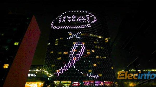 9月28日夜,英特爾的藍色LOGO變?yōu)榉凵?,閃耀在北京三里屯
