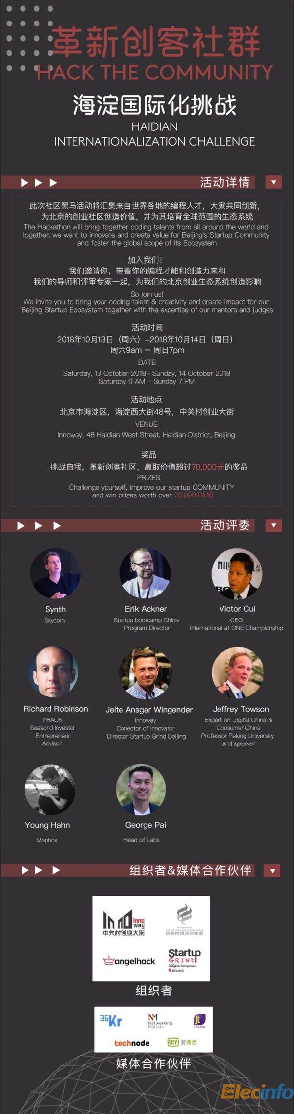 2018年10月13日-14日,Skycoin創(chuàng)始人Synth,作為評委之一,將出席北京海淀區(qū)中關(guān)村創(chuàng)業(yè)大街主辦的創(chuàng)新周黑客馬拉松活動。