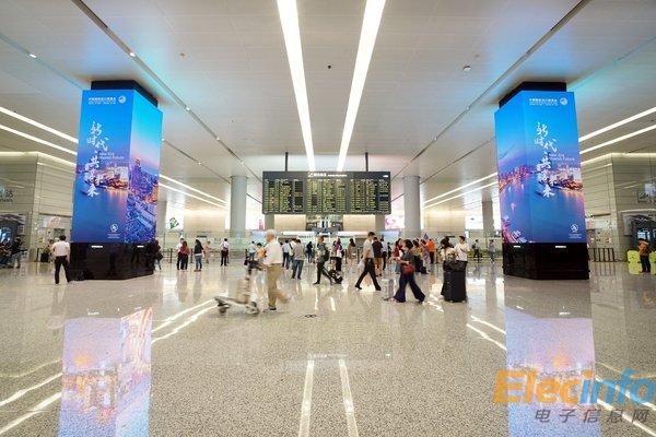 虹橋機(jī)場(chǎng)T2航站樓國(guó)內(nèi)到達(dá)全維度無邊全景數(shù)碼雙柱