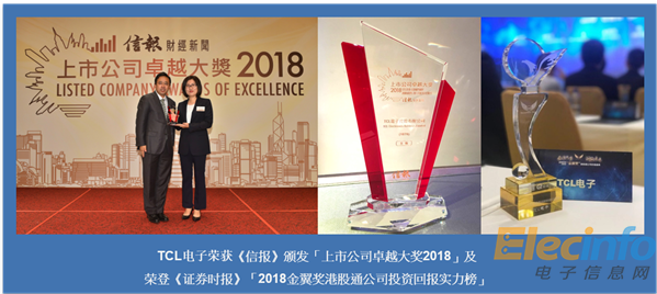 TCL電子榮獲《信報》頒發(fā)“上市公司卓越大獎2018”及榮登《證券時報》“2018金翼獎港股通公司投資回報實力榜”