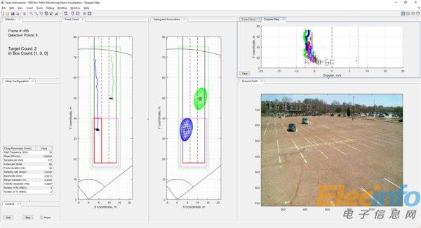 圖 2:左側(cè)的圖表清楚地顯示了使用IWR1642檢測和跟蹤兩輛車的過程