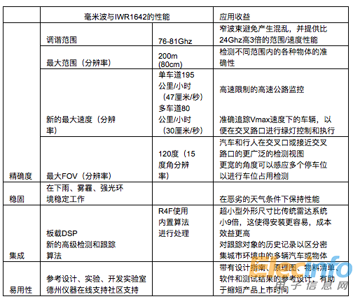 表1:TI的毫米波傳感器為智能交通系統(tǒng)提供了優(yōu)勢