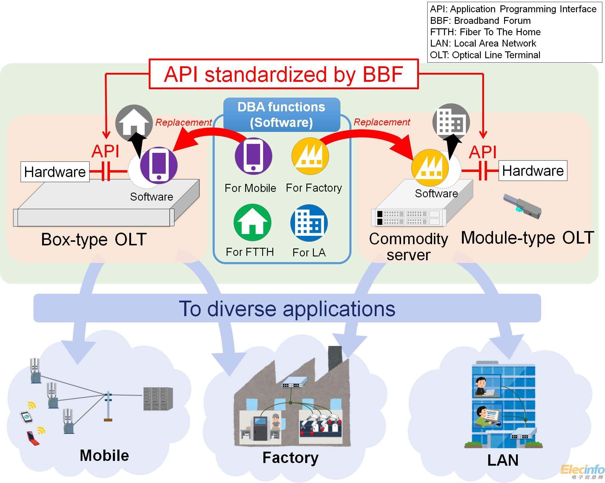-2018年12月3日,致力于構(gòu)建更智能、更快速的寬帶網(wǎng)絡(luò)的行業(yè)機(jī)構(gòu) Broadband Forum (“BBF (*1)”) 批準(zhǔn)了有關(guān)動(dòng)態(tài)帶寬分配 (DBA (*2)) 功能模塊化的標(biāo)準(zhǔn),將為光纖接入系統(tǒng)的服務(wù)質(zhì)量 (QoS) 帶來(lái)重要影響。這些標(biāo)準(zhǔn)由日本電信電話株式會(huì)社 (Nippon Telegraph and Telephone Corporation,簡(jiǎn)稱“NTT”) 和中華電信股份有限公司 (Chunghwa Telecom Co., Ltd.) 聯(lián)合制定,指定一個(gè)可以置換 DBA 軟件模塊的 API (*3)(Application Programming Interface,應(yīng)用程序接口),以實(shí)現(xiàn)能夠以具有成本效益的方式快速提供盡可能最廣泛服務(wù)的未來(lái)光纖接入系統(tǒng)。