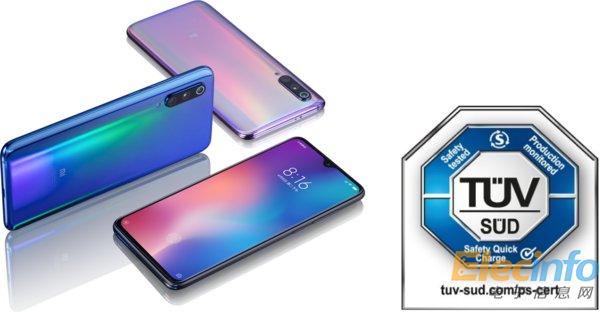 小米9手機(jī)獲得TUV 南德安全快充認(rèn)證證書