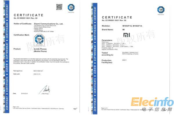 小米9 TUV 南德
