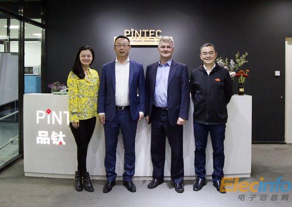 品鈦創(chuàng)始人兼CEO魏偉(右一),InfraRisk創(chuàng)始人兼CEO Nicholas Davies(右二),品鈦總裁周靜(左一),InfraRisk聯(lián)合創(chuàng)始人Victor Li(左二)