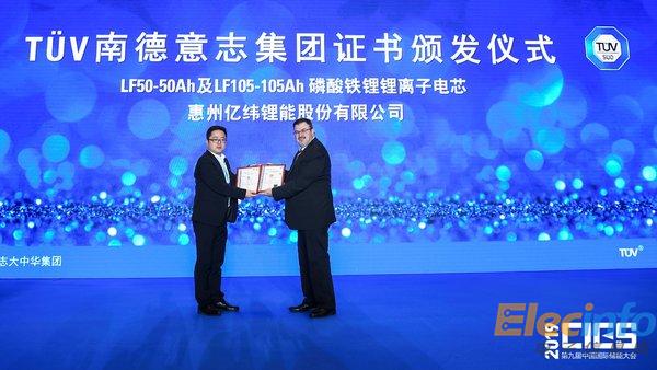 億緯鋰能兩款鋰離子電芯獲TUV南德認證證書