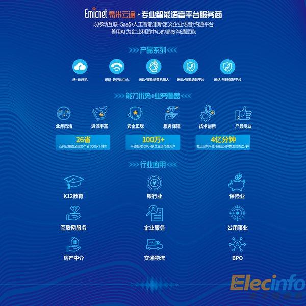 專業(yè)智能語(yǔ)音平臺(tái)服務(wù)商 -- 易米云通從創(chuàng)立之初就意識(shí)到軟件定義語(yǔ)音 (Software-Defined Voice, SDV) 的重要性,隨著云計(jì)算和AI的發(fā)展,易米云通為企業(yè)用戶帶來(lái)了無(wú)需硬件部署,即開(kāi)即用的米話系列專業(yè)云通信服務(wù),并按照 SaaS 方式提供隨時(shí)按需使用。截至目前,易米云通的服務(wù)已覆蓋全國(guó)26省、300+城市、發(fā)展了100萬(wàn)+企業(yè)級(jí)付費(fèi)用戶,平臺(tái)承載語(yǔ)音話務(wù)量已達(dá)每月近4億分鐘,服務(wù)了包括銀行保險(xiǎn)、公用事業(yè)、K12教育、互聯(lián)網(wǎng)服務(wù)、企業(yè)服務(wù)和交通物流等在內(nèi)的眾多行業(yè)頭部客戶。
