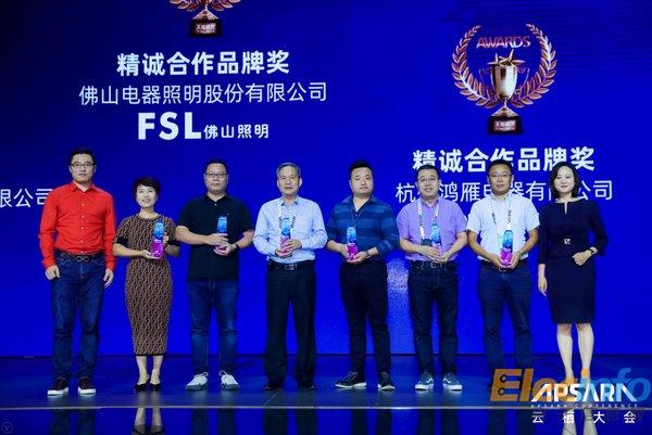 佛山照明榮獲天貓精靈精誠(chéng)合作品牌獎(jiǎng),總經(jīng)理劉醒明代表企業(yè)領(lǐng)獎(jiǎng)(左四)