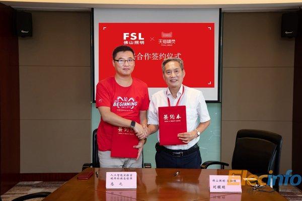 天貓精靈人工智能實(shí)驗(yàn)室硬件終端總經(jīng)理忘之(左)與佛山照明總經(jīng)理劉醒明(右)簽署合作協(xié)議