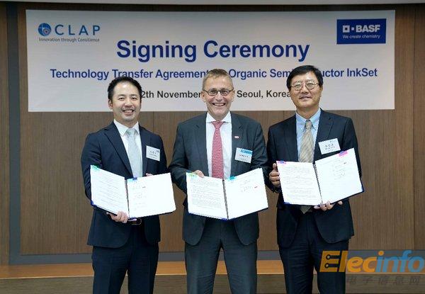 2019年11月12日,韓國顯示配件及傳感器行業(yè)的領(lǐng)先企業(yè) CLAP(CEO:金星虎)與全球化工公司巴斯夫 (BASF) 在韓國首爾簽訂 Organic Semiconductor InkSet 技術(shù)轉(zhuǎn)讓合同。