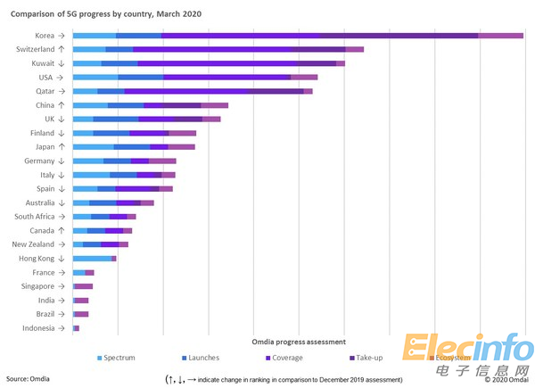 全球調(diào)查公司OMDIA發(fā)布了《2020年3月全球5G進展更新》第二版報告。OMDIA分析了22個國家的5G技術部署情況,而該報告顯示其中韓國在5G部署領域排名第一。