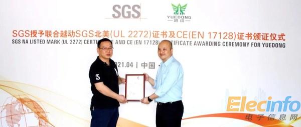 SGS授予聯(lián)合越動北美 (UL 2272)及CE (EN 17128)證書