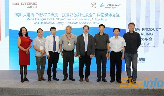 5月18日,德國(guó)萊茵TUV大中華區(qū)(以下簡(jiǎn)稱 “TUV萊茵”)聯(lián)合高時(shí)(廈門)石業(yè)有限公司(以下簡(jiǎn)稱“高時(shí)石業(yè)”)舉行了“低VOC釋放、抗菌及放射性安全”人造石產(chǎn)品發(fā)布會(huì)。廈門海關(guān)技術(shù)中心副主任王偉、石材實(shí)驗(yàn)室主任蔡繼杰,高時(shí)集團(tuán)董事長(zhǎng)高忠麟、總經(jīng)理鄧慶樂,TUV萊茵大中華區(qū)認(rèn)可與認(rèn)證副總裁霍揚(yáng)(Jan Hoehne)、TUV萊茵福建公司總經(jīng)理陳俊東等三方代表出席了活動(dòng)。