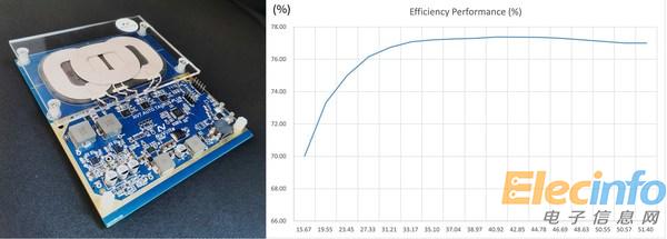 圖一:伏達車載無線充參考設計NVTREF8040Q及實測充電效率曲線