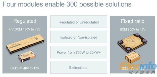 此外,Vicor 模塊化方法還允許工程師通過使用三到四個不同類型的可擴(kuò)展構(gòu)件模塊,實(shí)現(xiàn)大約 300 種供電組合。(圖 4)這種設(shè)計(jì)方法總共可節(jié)省數(shù)百個小時的時間和資源,能夠幫助 OEM 廠商在電氣化競爭中處于領(lǐng)先地位。