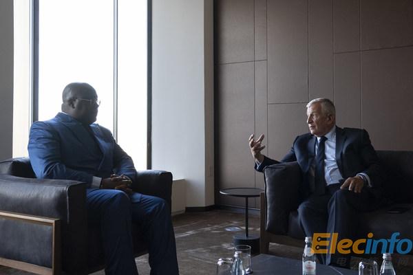 FII Institute CEO Richard Attias (right) speaks with Democratic Republic of the Congo President Félix-Antoine Tshisekedi Tshilombo about global collaboration on vaccine development at the FII Institute Health is Wealth roundtable in New York today, September 21.