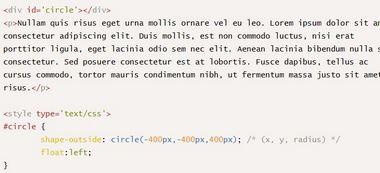 最初的目的只是希望文本內(nèi)容能夠在形狀周圍浮動(dòng),為了達(dá)到這個(gè)目的,不得不使用shape-outside屬性,就像: