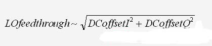 DC 偏移會與 LO 混頻,產(chǎn)生 LO 饋通,即wLO的頻率。I和Q分支的DC偏移加入正交,形成以下的LO饋通振幅: