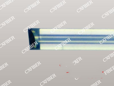 斜楔形透鏡是通過楚星自制的精密研磨設(shè)備,在光纖的端面研磨成斜楔形,后經(jīng)過特殊的加工手段在其尖端加工出光學微柱透鏡,從而達到將光纖光斑整形成為長條形,與PUMP激光器光斑形成匹配。